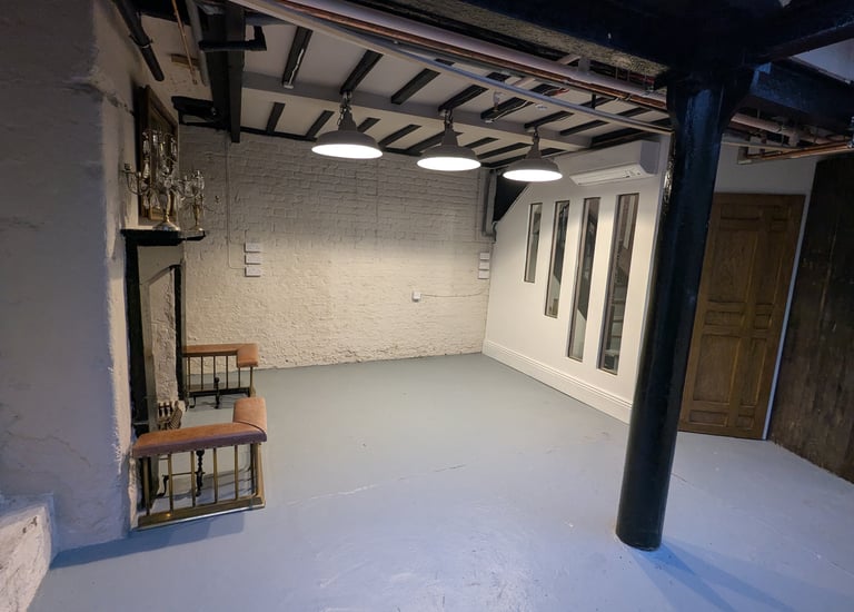 Nestled below ground level, the basement is arguably the cosiest and more laid-back of the three spaces at 41 Whitfield Street. Spacious and stylish, it is a space defined by contrast, where the industrial cool of a clean concrete floor meets the warmth of the antique fireplace. The relaxed ambiance of this basement space makes it a good London creative venue for workshops and brand launches.